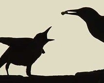 berkata seekor burung dewasa kepada burung hitam kecil, burung hitam kecil itu pun mengambil beberapa makanan untuk dibawanya pulang ke sarang, sementara itu di sarang burung hitam kecil tersebut terbaring seekor burung tua yang adalah ibu dari burung kecil.